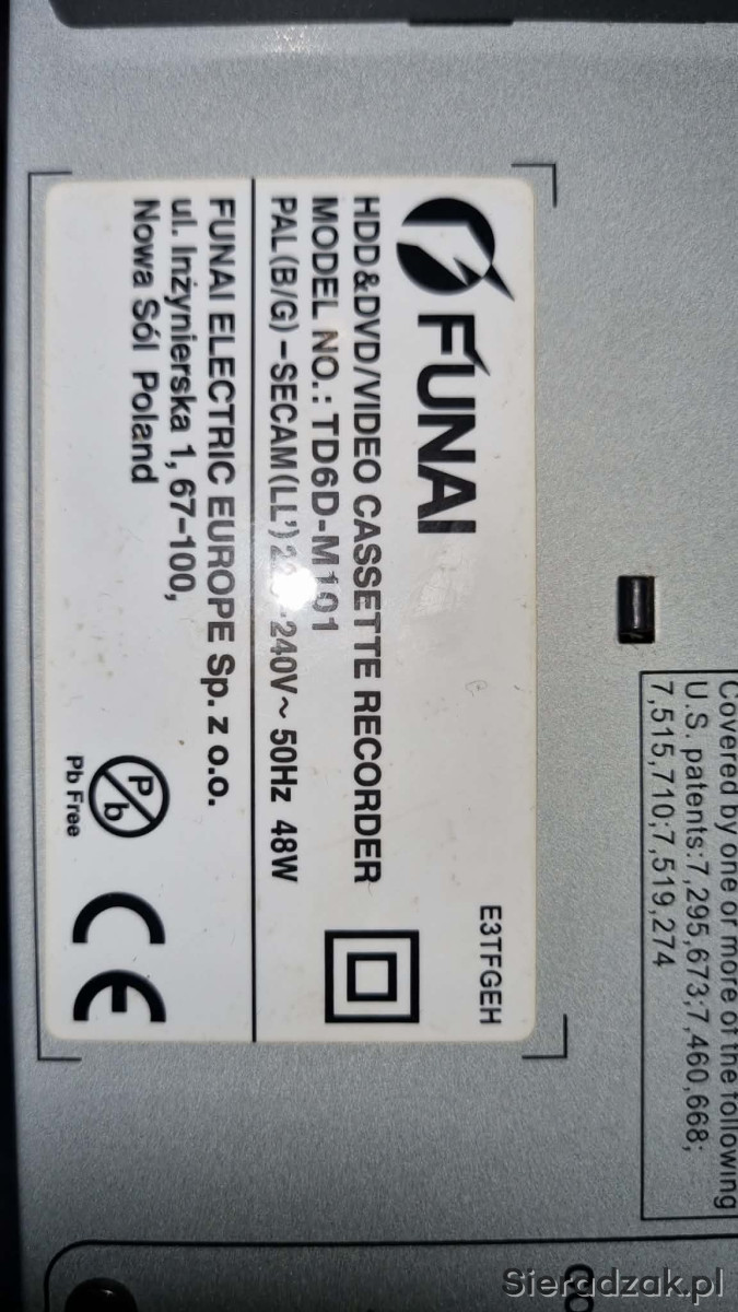 Nagrywarka DVD VHS Funai TD6D-M101 6-Head HDMI USB VHS HDD twardy dysk. 500GB. Brak pilota.