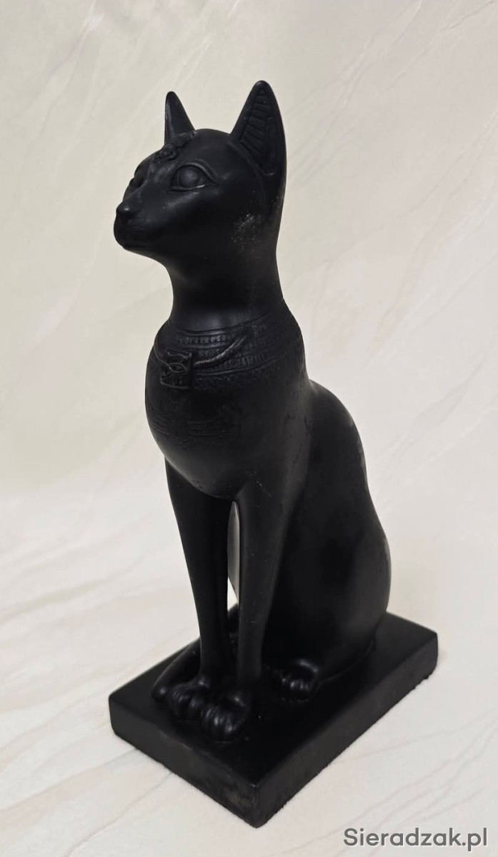 Czarny kot z motywami egipskimi. Wysokość ok 20 cm.