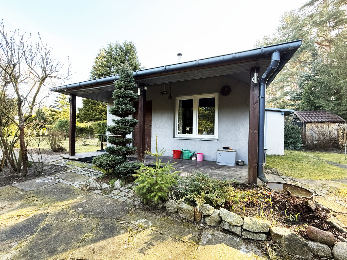 Na działce znajduje się parterowy, murowany letniskowy dom o powierzchni około 30 m2 składający się z aneksu kuchennego połączonego z salonem oraz łazienki.