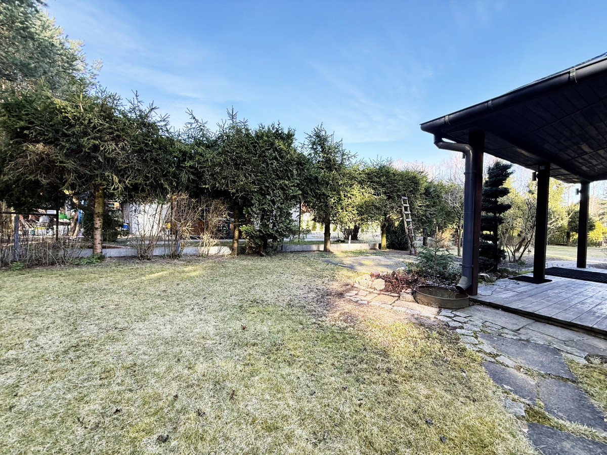 Cała działka ogrodzona oraz zabezpieczona bramą wjazdową wraz z furtką. Całkowicie zagospodarowana - liczne nasadzenia roślin.