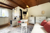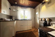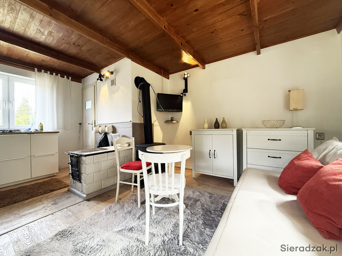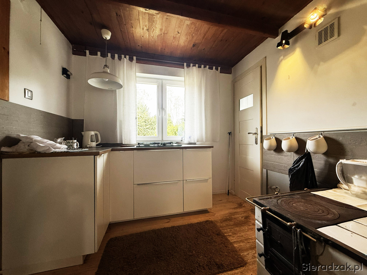 Aneks kuchenny wyposażony został w zabudowę kuchenną, zlewozmywak oraz płytę gazową. Dodatkowym atutem jest działająca kuchnia letniskowa.