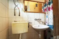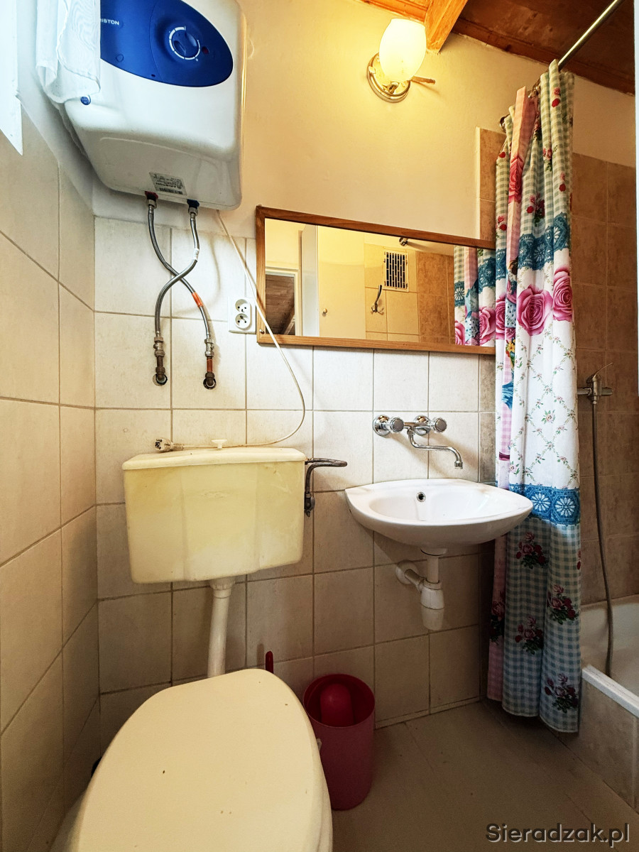 Łazienka częściowo w glazurze wyposażona w wc, prysznic oraz umywalkę. Ciepła woda z termy.