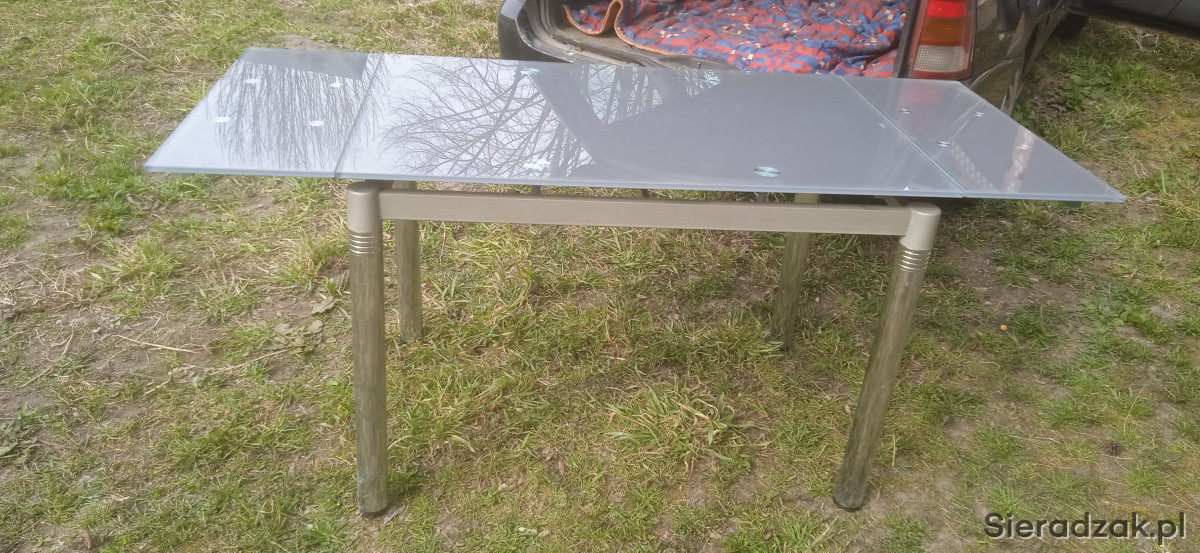 piekny stol metalowy z grubym szklem firmowy rozkladany stol ze szwecji drogi jako nowy super wyglad prak nowy okazja