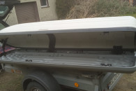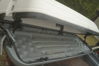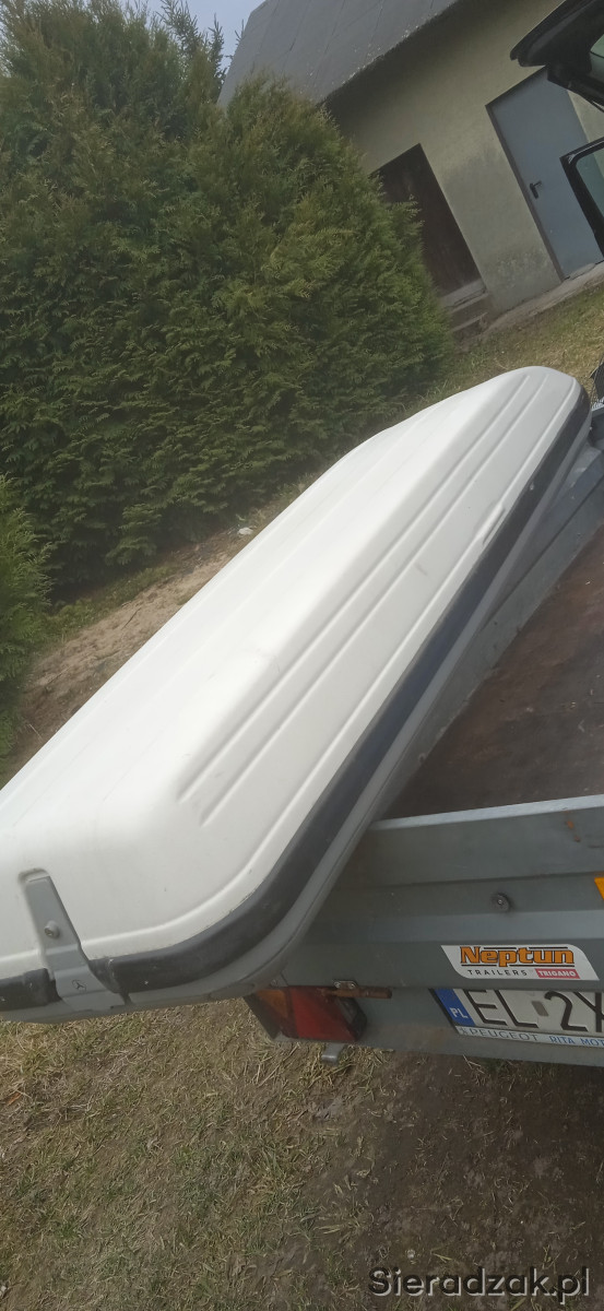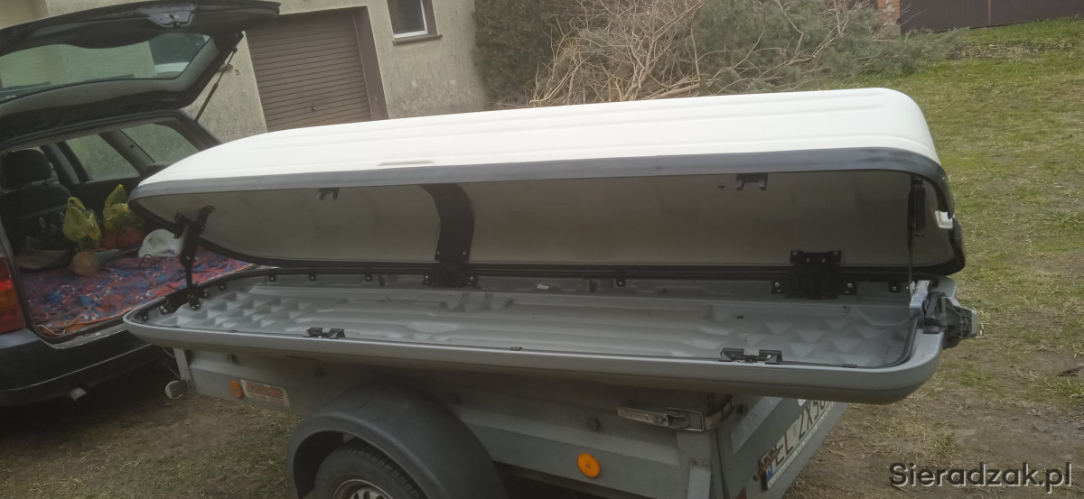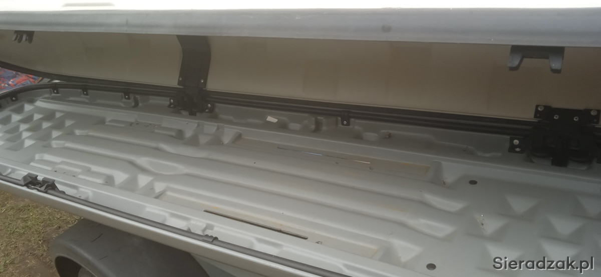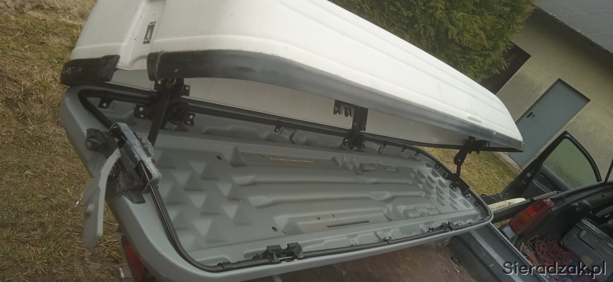 sprzedam box dachowy porzadny z mega grubego plastiku 2,35 x60x30 pasuje do wielu modeli aut a dedykowany do mercedesa audi i wolkswagena bo otwierany z dwoch stron