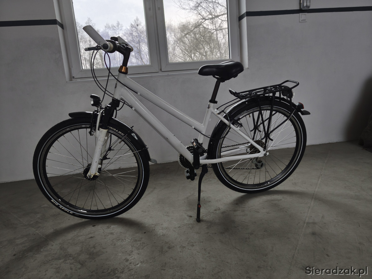 Sprzedam rower damski/młodzieżowy marki BOCAS na kołach 26. Aluminiowa rama, amortyzowany przedni widelec, prądnica (dynamo) w piaście, sprawne oświetlenie.