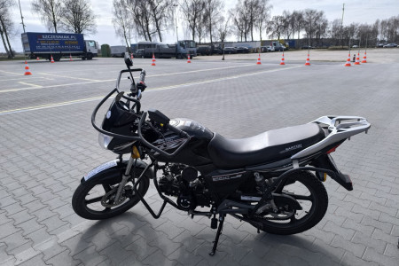 Stan techniczny: Motocykl jest sprawny, odpala i jeździ bez zarzutu. Dzięki regularnym przeglądom w szkole jazdy (musiał być zawsze gotowy dla kursantów), silnik i podzespoły są w dobrej kondycji. Wizualnie posiada drobne ślady użytkowania, ale ogólna prezencja jest bardzo dobra (patrz zdjęcia).