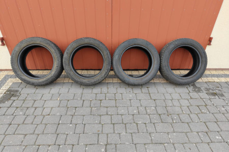 Sprzedaję same opony, bez felg. Stan opon widoczny na zdjęciach. Bieżnik równomierny, bez widocznych uszkodzeń czoła. Normalne ślady użytkowania i przechowywania. Żadna z opon nie była uszkodzona i klejona. Bieżnik ok. 5,2-5,6 mm.