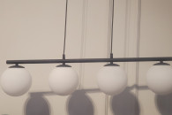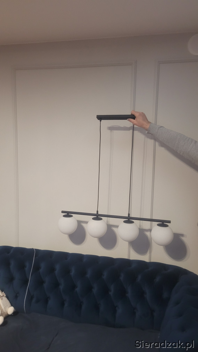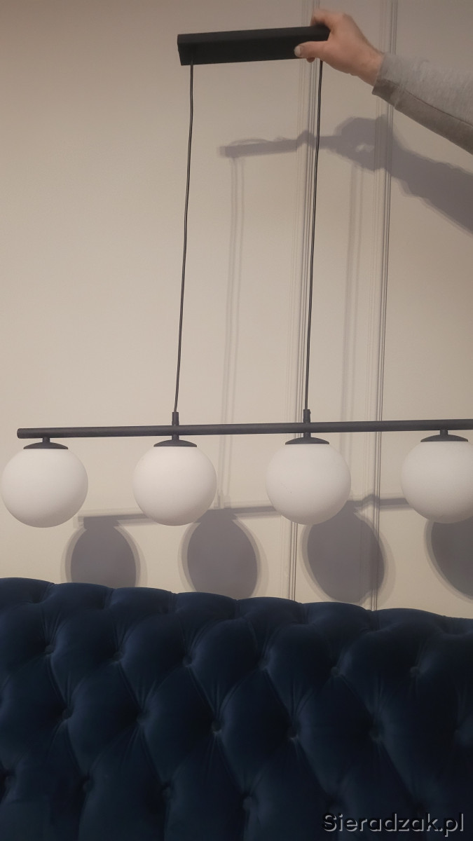 Sprzedam lampę wisząca, szerokość 88 cm, długość regulowana max 96 cm, żarówka duży gwint E 27, średnica kul 15cm