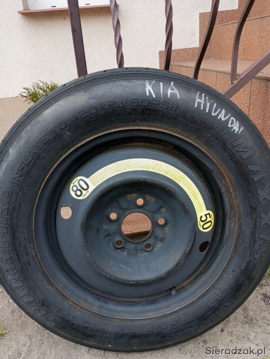 Sprzedam koło dojazdowe 155/90/16. Rozstaw śrub 5x114.3. Więcej informacji pod numerem telefonu 789-316-476