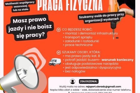 Szukamy osoby do pracy fizycznej przy organizacji wydarzeń