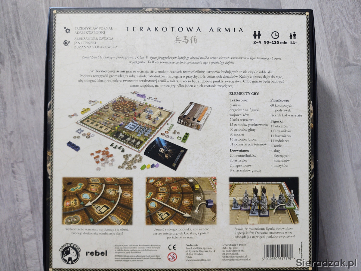 Witam, sprzedam używaną, strategiczną grę planszową Terakotowa Armia. Gra jest w stanie idealnym (raz rozłożona), wszystkie elementy są kompletne.