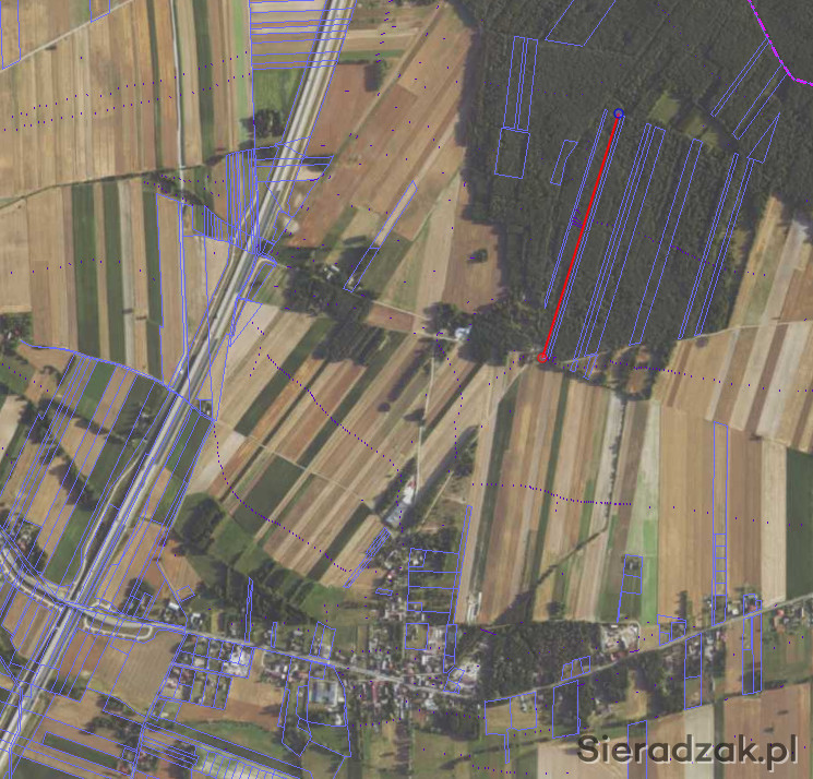 Wymiary działki: długość około 720m, szerokość około 7 metrów