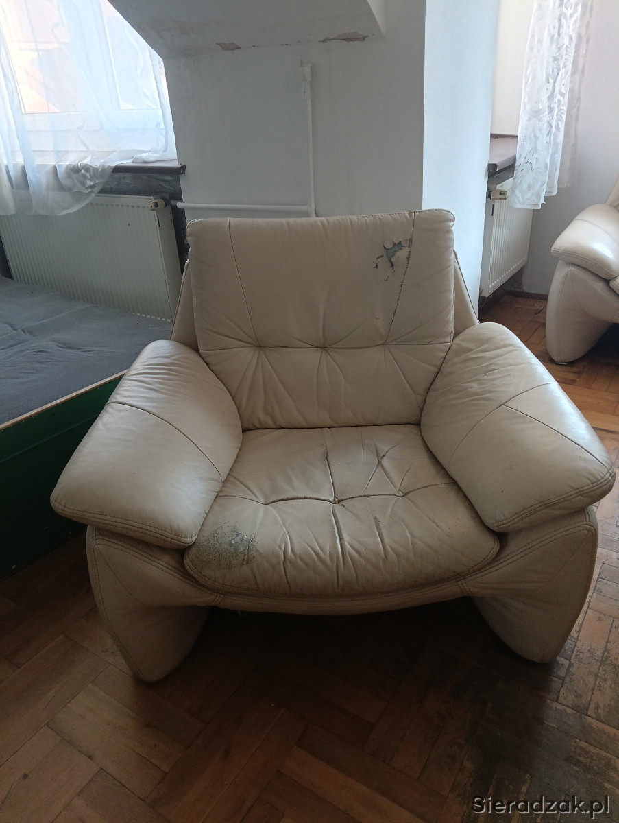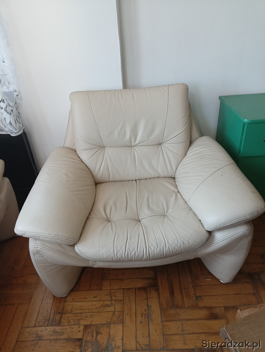 -Komplet wypoczynkowy biały , kanapa,nierozkładana,dwa fotele-cena za komplet 400 zł.