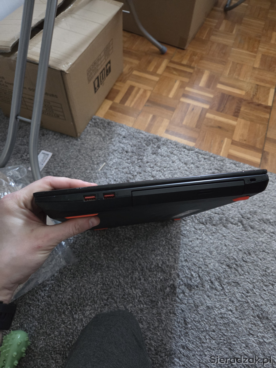 Laptop wystawiony jest taniej z powodu nie działania dwóch USB po prawej stronie ponieważ podobno serwisant podczas czyszczenia zniszczył tasiemki sygnałowe i gniazdo/gniazda na płycie , pozostałe dwa USB po lewej działają bez zarzutu, można sobie hub USB podpiąć albo użytkować tak jak jest, problem jest też z klawiaturą po wizycie w tym serwisie żeby działał klawisz 3 lub e lub spacja (takie zauważyłem) to trzeba wcisnąć też inny klawisz, więc klawiatura pod usb się przyda, także proszę mieć na uwadze że jest to laptop po przejściach, nie ma też kilku śrubek od spodu, poza tym zwykłe ślady użytkowania jest to sprzet używany, nie przegrzewa się, wyczyszczony z kurzu, testowany furmarkiem oraz OCCT, matryca FullHD 17 cali.