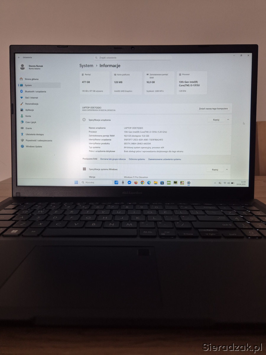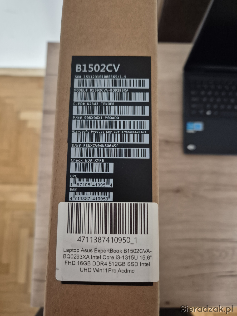 Do sprzedania laptop biznesowy ASUS ExpertBook B1502 15,6" i3-1315U/16GB/512/Win11Pro.
