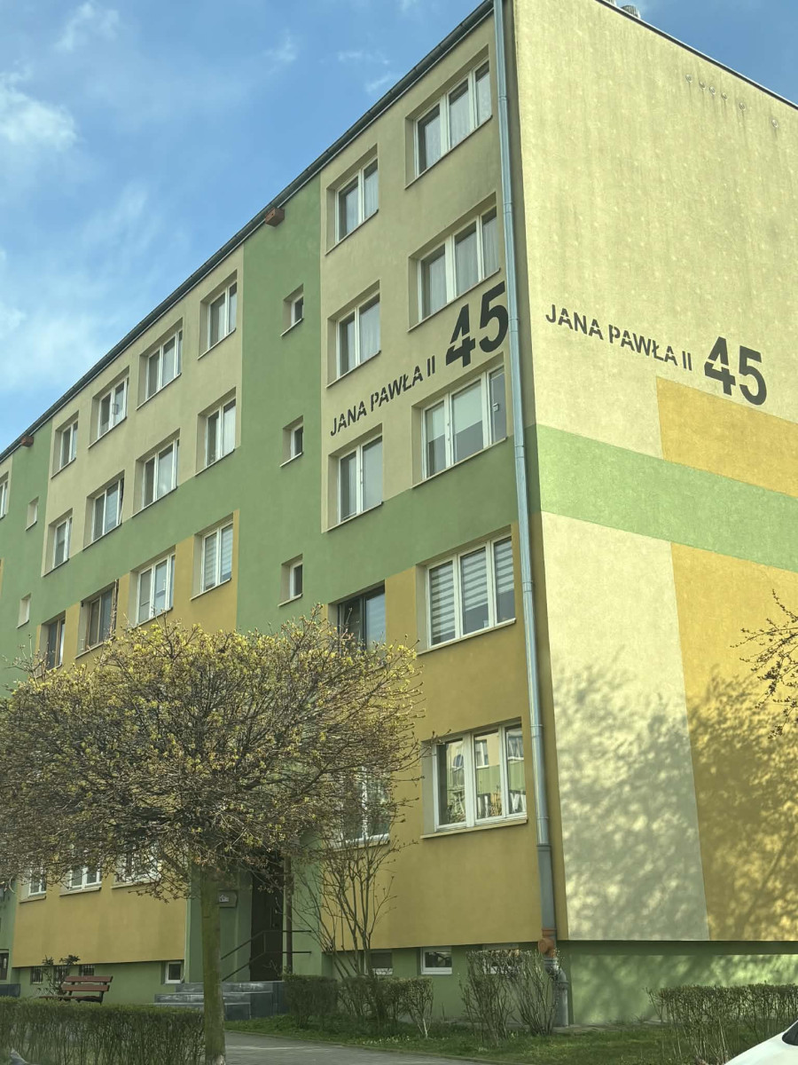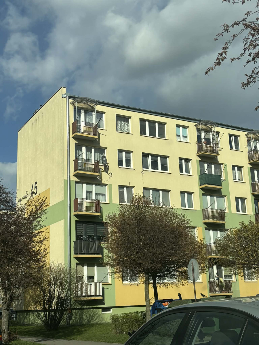 Atutem mieszkanie jest jego położenie na starym i spokojnym osiedlu, w bezpośrednim sąsiedztwie duży park, szkoła podstawowa oraz sklepy, ośrodek zdrowia. Mieszkanie dwustronne, rozkładowe i bardzo słoneczne, położone jest na 4 piętrze, o powierzchni 48 m2 na które składa się przedpokój, kuchnia, łazienka połączona z WC oraz 3 pokoje - 1 duży wyjściem na balkon oraz 2 mniejsze.