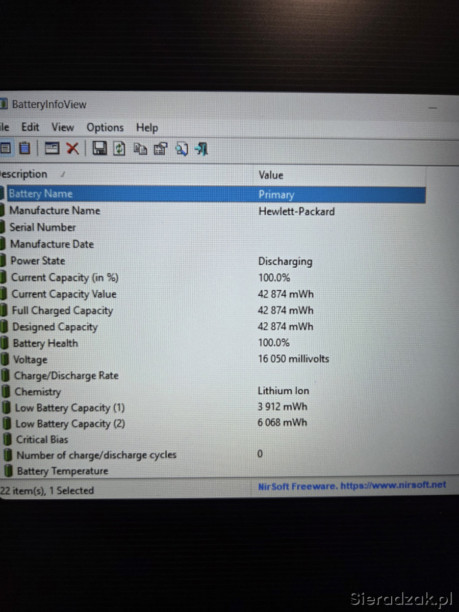 Bateria została założona NOWA dnia 04.04.2026r, mam dowód zakupu baterii tym samym bateria jest na gwarancji, ale do gier i tak się gra na zasilaczu (większy prąd potrzebny dla grafiki).