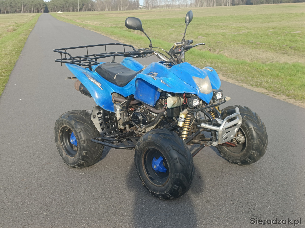 Sprzedam quada Bashan 250 z homologacją, chłodzony cieczą, zarejestrowany na samochód osobowy inny, z 2009 roku. Stan oceniam na dobry