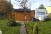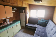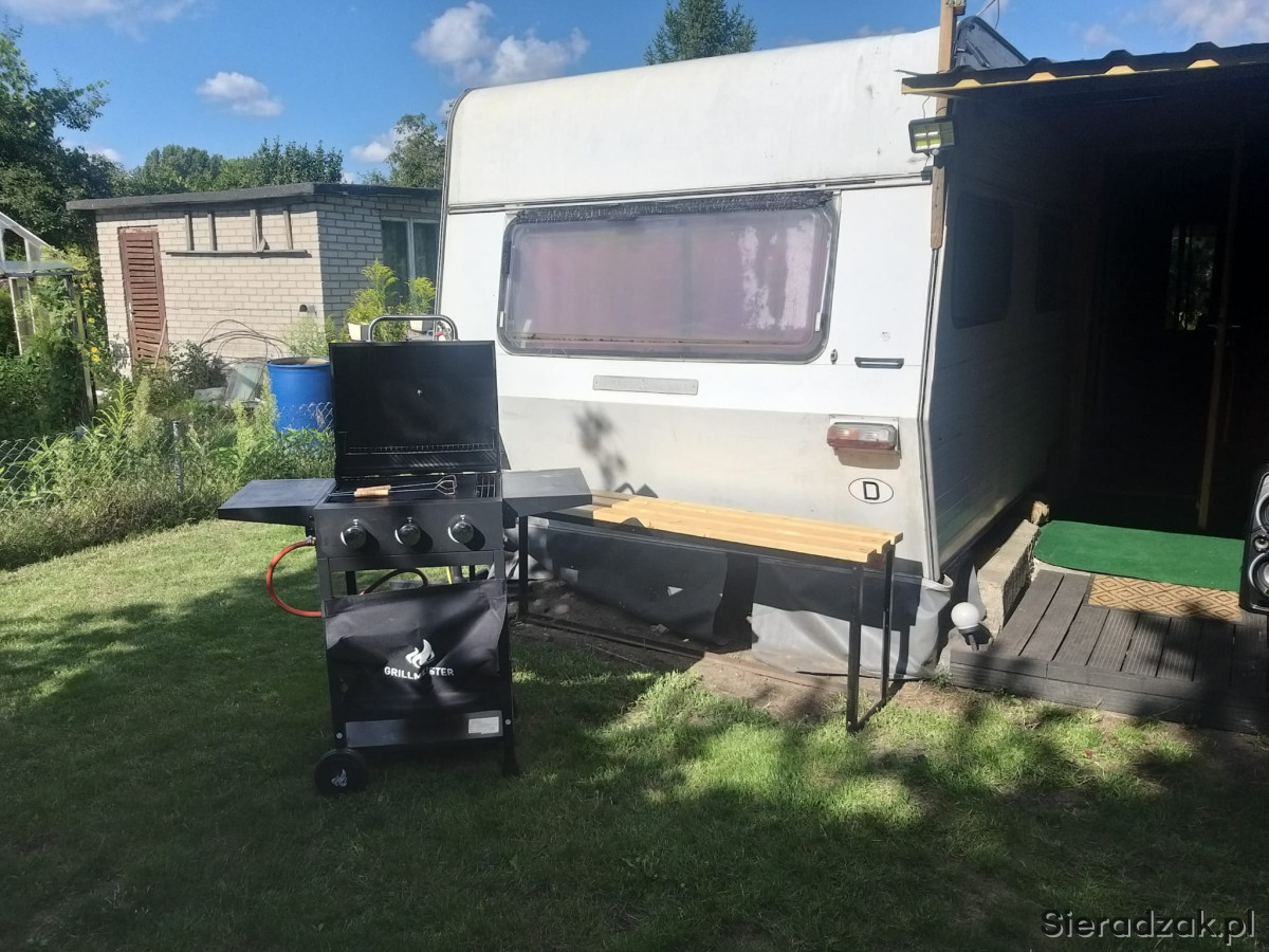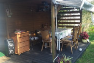 Na dziłce znajduje się domek z komórką połaczony z przyczepą kempingową. Na działce spokojnie wyśpi się kilka osob.