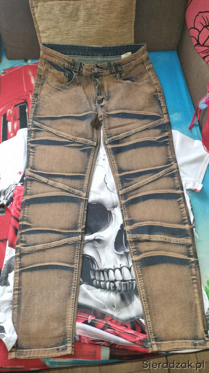 Męskie modne, codzienne, elastyczne spodnie dżinsowe wzór. Nowe rozmiar XL 90-100cm obwód pasa. Super modne eleganckie.