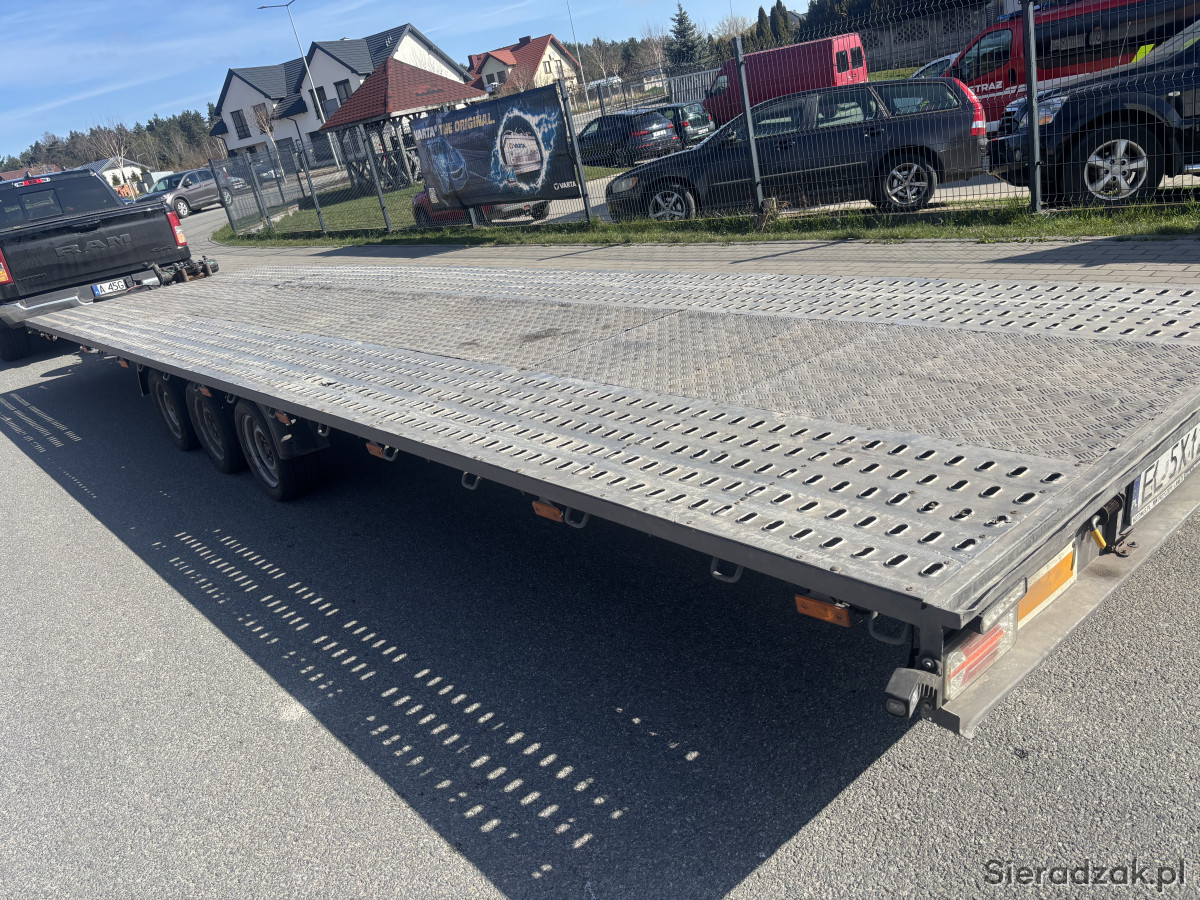 Oferuje wynajem lawety o dmc 3,5t i ładowności 2430 kg. Laweta o długości 8,5 m płaska z wypełnieniem idealna pod busy, osobówki, maszyny budowlane, drewno konstrukcyjne lub inne towary na paletach. Laweta posiada wciągarkę elektryczną z niezależnym zasilaniem. Możliwość dostarczenia do klienta na terenie Sieradza. Cena wynajmu za dobę 150 zł przy dłuższym wynajmie cena ustalana indywidualnie. Udostępniam pasy transportowe . Kaucja zwrotna 500 zł . Tel 579271511. Mozliwość wynajmu z kierowcą i samochodem, cena ustalana w zależności od ładunku i trasy.