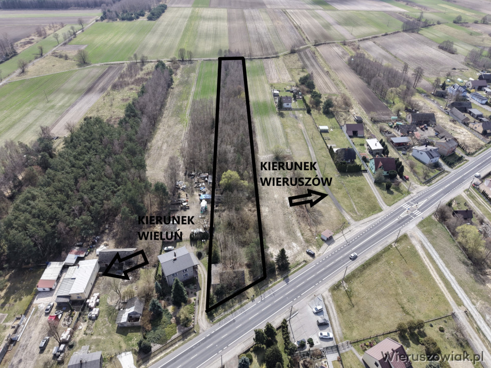 Działka o kształcie prostokąta z bezpośrednim dostępem do drogi asfaltowej.