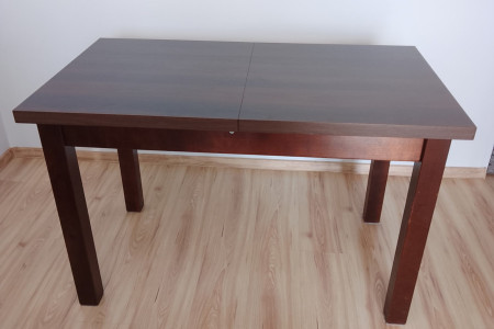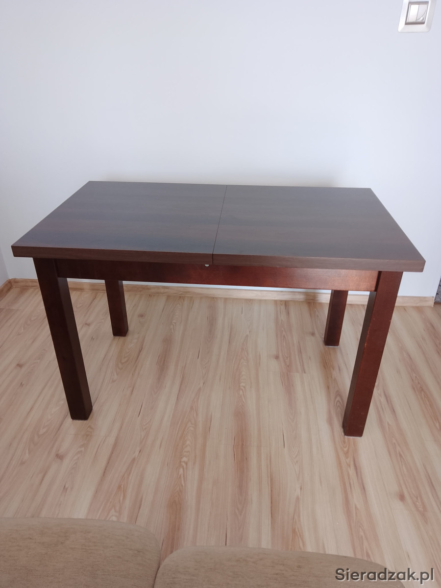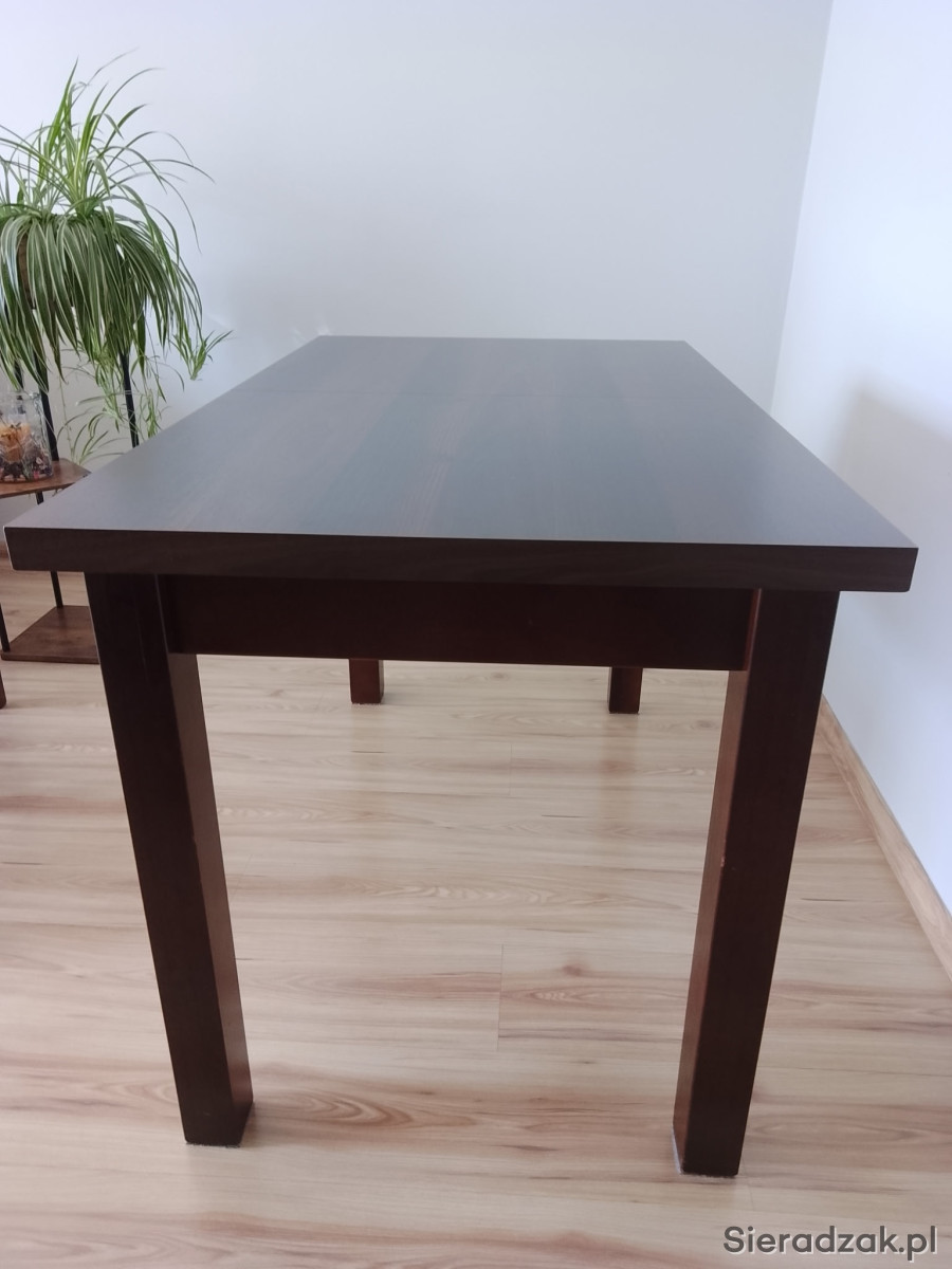Na sprzedaż elegancki i solidny stół w kolorze ciemnego drewna. Idealny do jadalni, kuchni lub salonu.