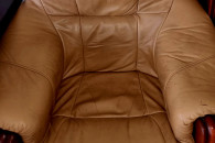 Na sprzedaż oferuję klasyczną, niezwykle wygodną kanapę 3+1+1 wykonaną z wysokiej jakości skóry naturalnej w ciepłym, beżowo-piaskowym kolorze. Mebel osadzony jest na solidnym, ozdobnym stelażu z litego drewna, co nadaje mu elegancji i gwarantuje stabilność na lata.