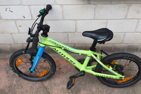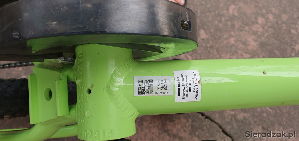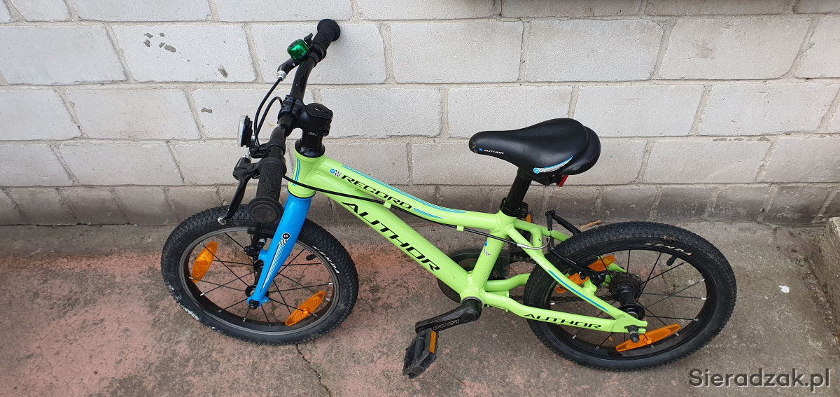Rowerek dziecięcy Author Record. Bardzo lekki, około 6,5kg, rama aluminiowa. Dla dzieci o wzroście 100 - 125cm. Osłona łańcucha w komplecie jak i dodatkowa rączka do nauki jazdy. Rowerek był kupiony jako nowy, obecnie nosi ślady użytkowania...