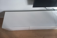 Biała szafka telewizyjna IKEA o wymiarach 120cm x 40cm x 38cm. Solidna konstrukcja i nowoczesny design. Idealna do przechowywania sprzętu RTV i dekoracji. Posiada normalne ślady użytkowania, takie jak rysy i obtarcia. Posiadam 2 sztuki, w jednej z nich wycięty otwór na przewody. Cena podana za 1 sztukę.