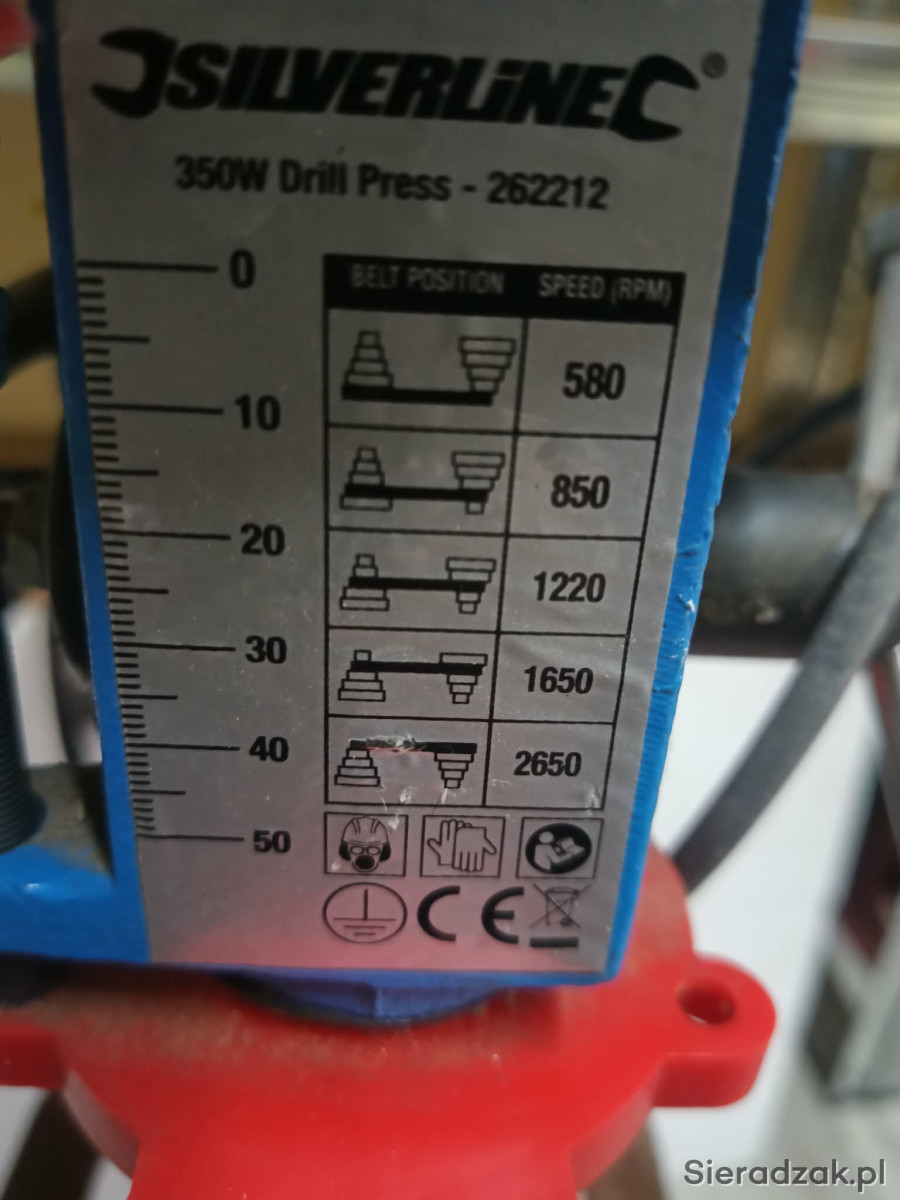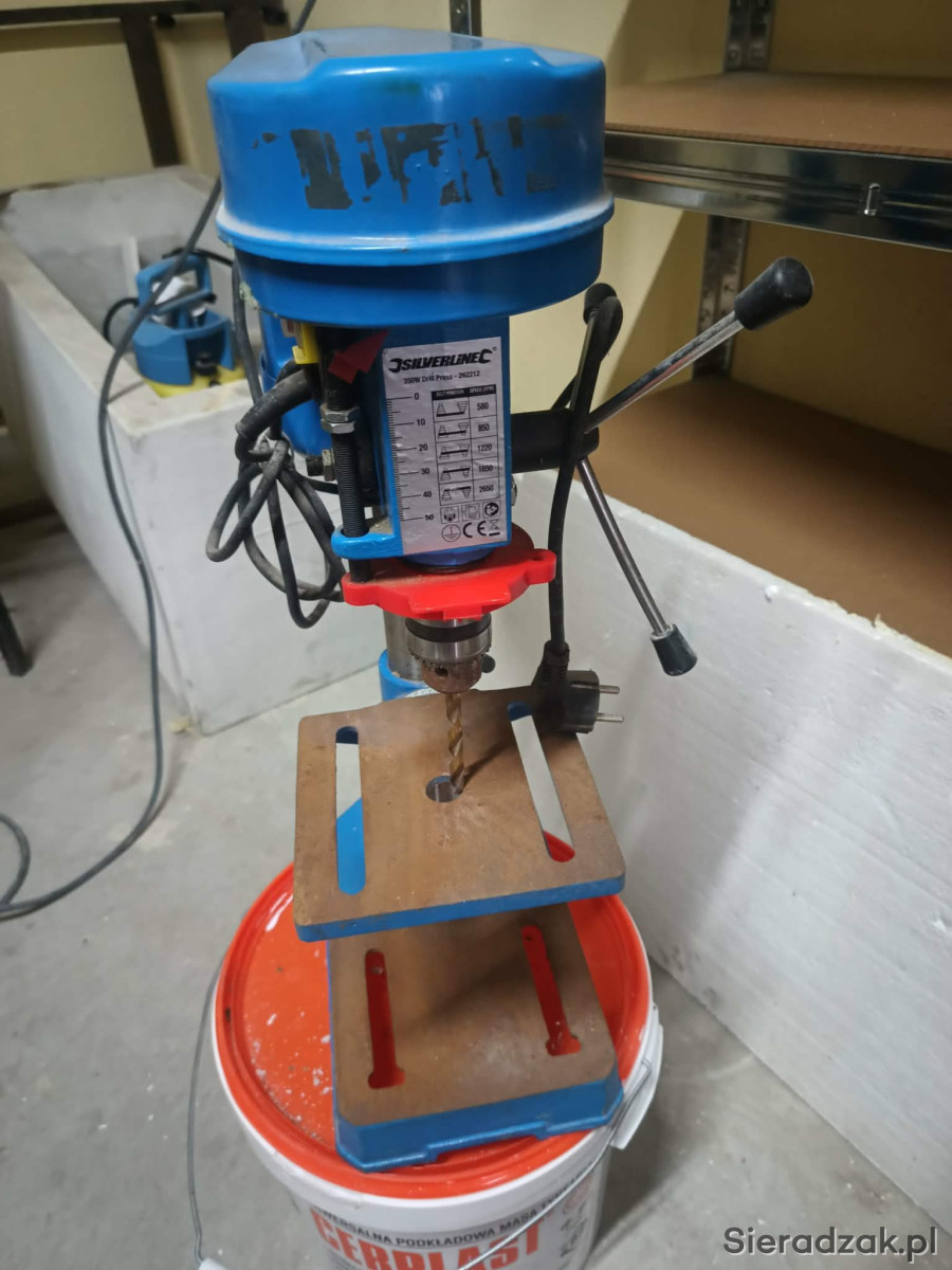 Sprzedam wiertarkę stołową, 5-biegowa przekładnia, Skok wrzeciona (głębokość wiercenia) 0-50 mm z ograniczeniem do dokładnych wierceń. Solidna podstawa ze stołem. Uchwyt wiertarski 13 mm Moc: 350 W