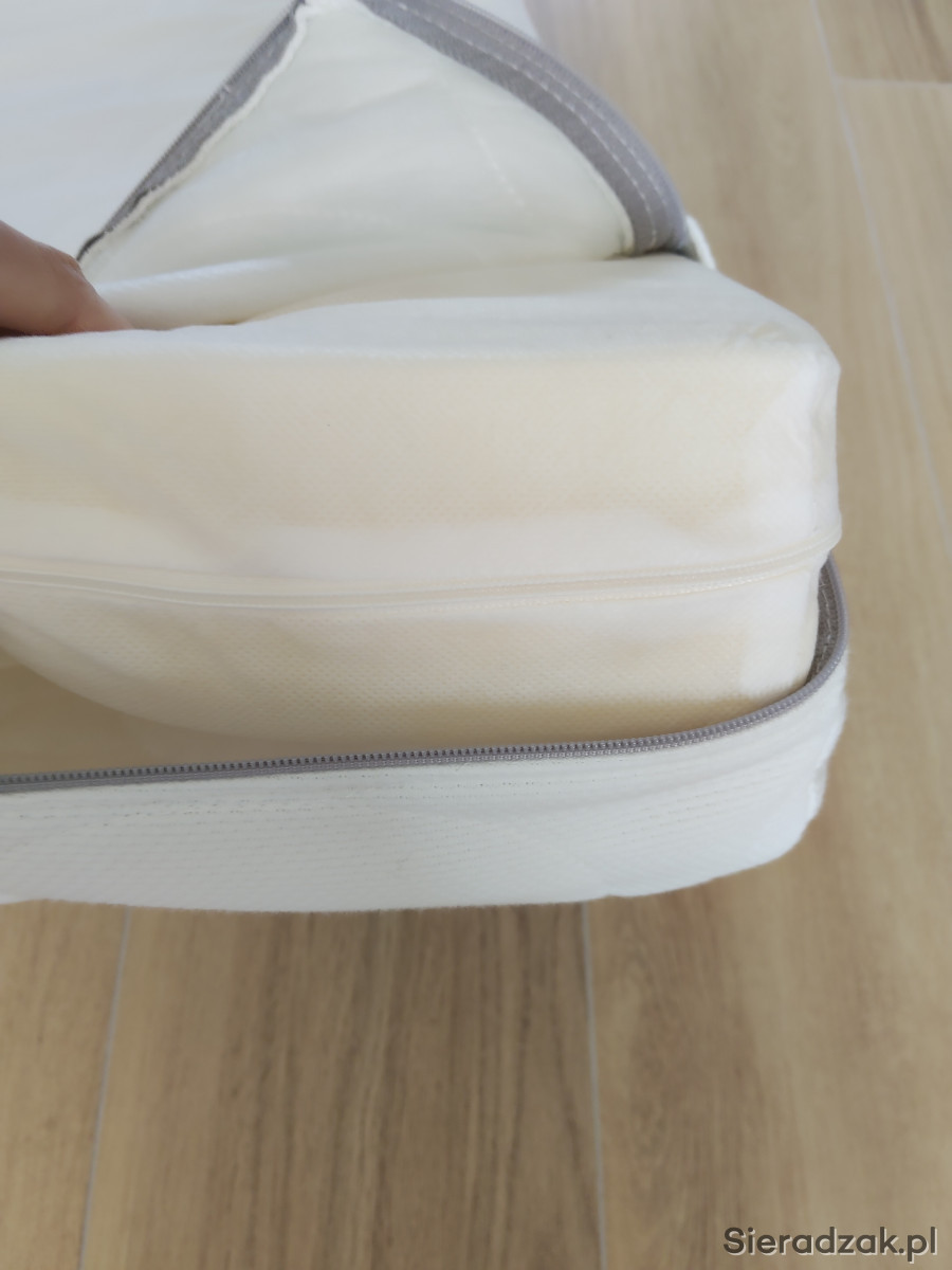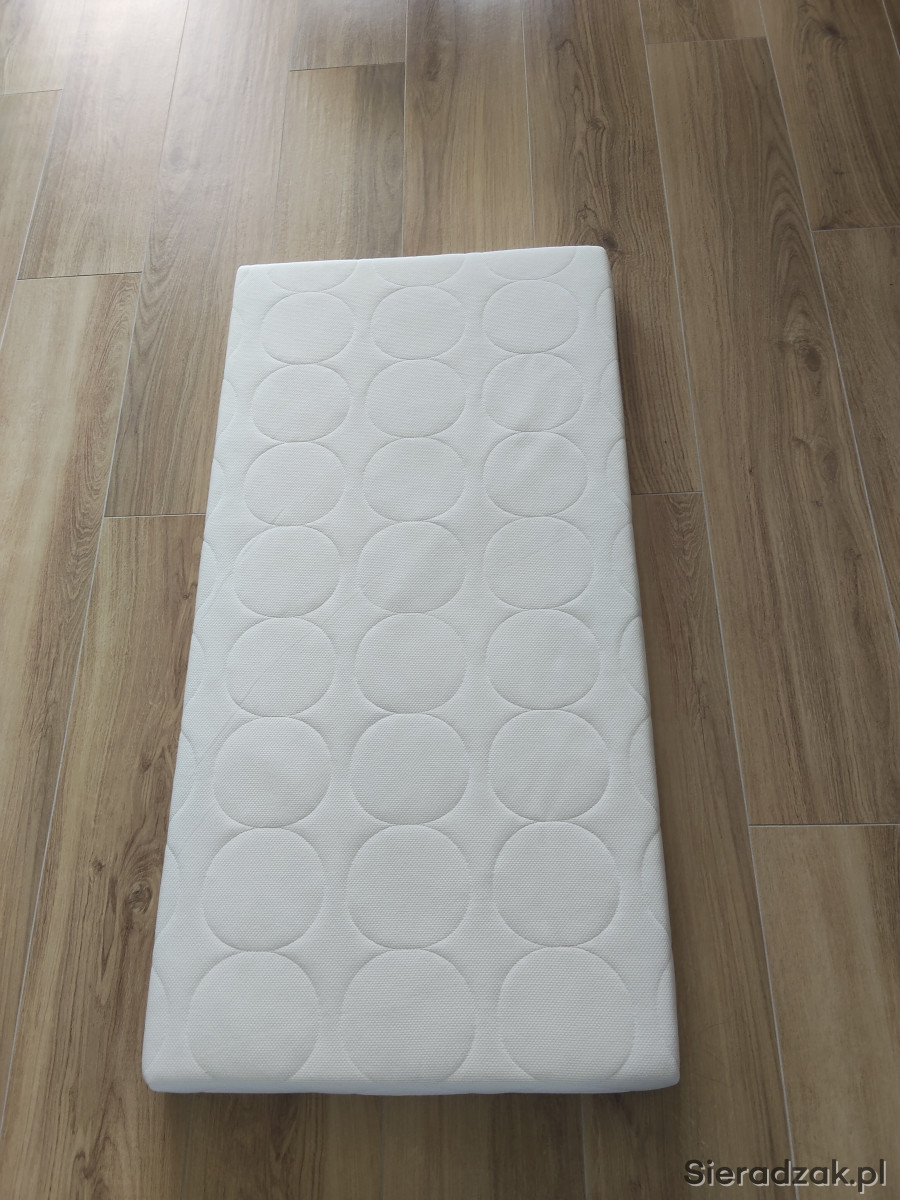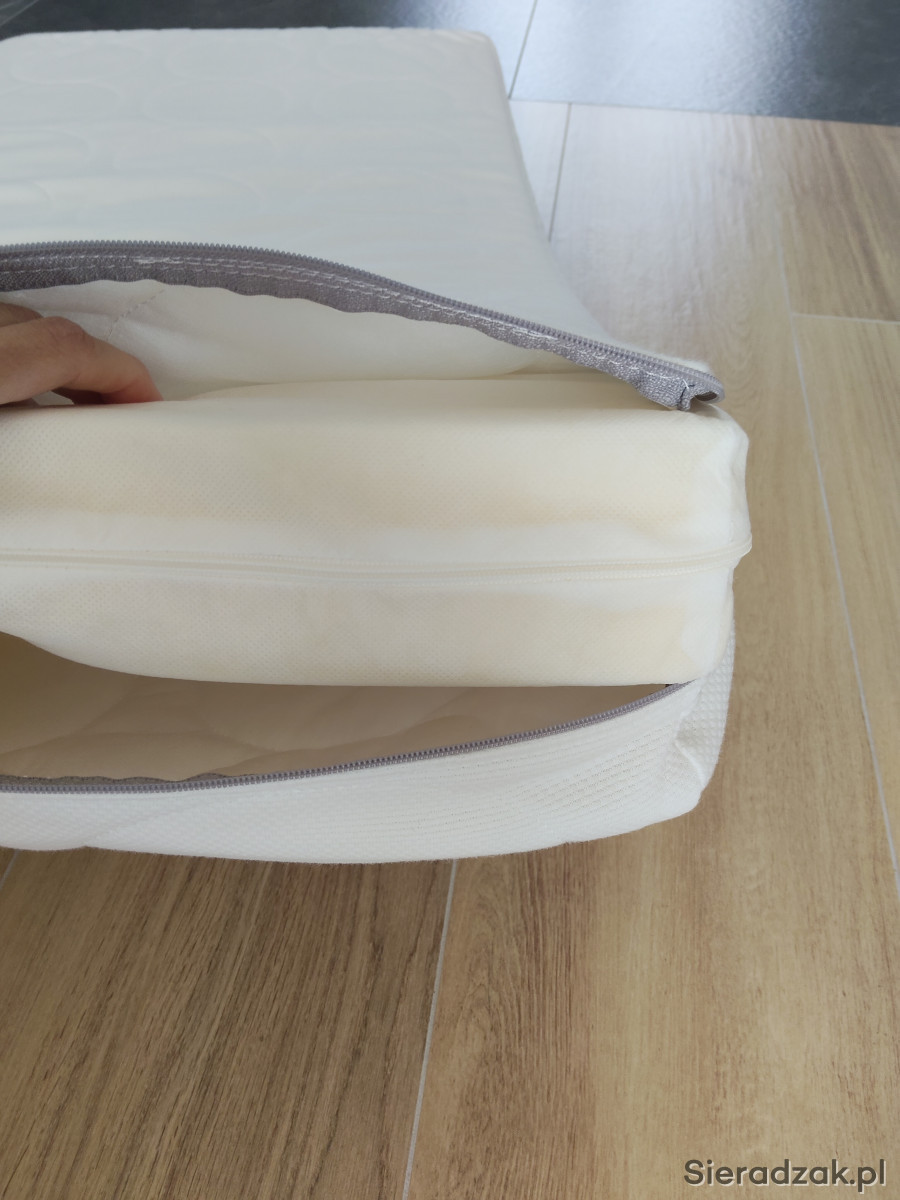 Materac plus przescieradełko do łużeczka dla maluszka. Zakupiony w Ikei. Tak naprawdę użyty raz kiedy dziecko było u mnie z wizytą. Stan materaca jak nowy. Z domu gdzie nie palimy i nie trzymamy zwierząt. Wymiary ok 60 x 120. Ok 8 cm grubości. Pokrowce materaca i gąbki można zdjąć i prać. Dorzucę przescieradełko również zakupione w Ikei.