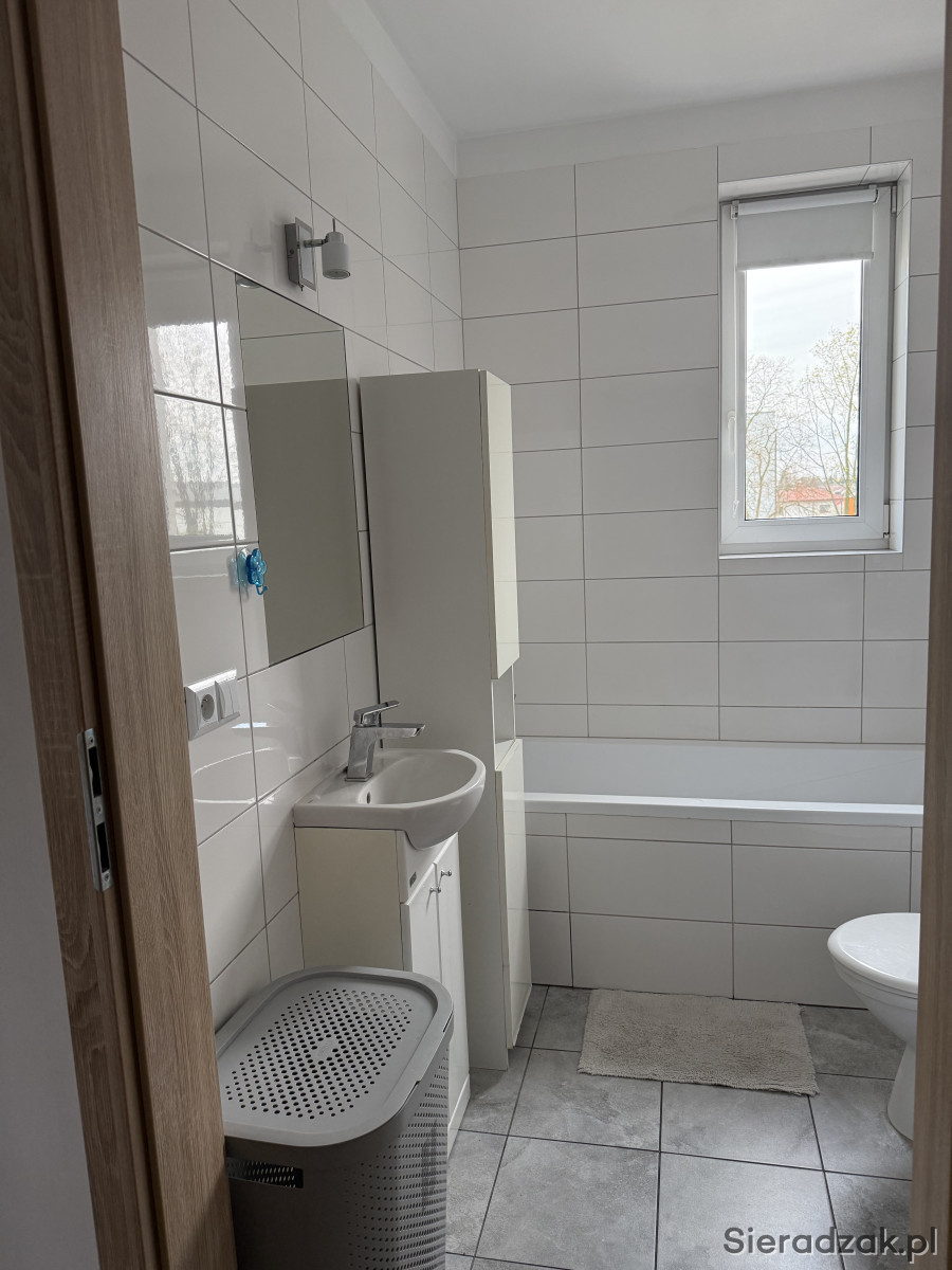 Wynajmę mieszkanie dwupokojowe na zamkniętym osiedlu w Sieradzu. Mieszkanie składa się z otwartego aneksu kuchennego z salonem oraz sypialni, łazienki. Mieszkanie w pełni umeblowane, świeżo malowane, znajduje się w centrum miasta, blisko sklepy i instytucje. Za dodatkową opłatą możliwość wynajęcia miejsca parkingowego na terenie ogrodzonego osiedla. Mieszkanie dostępne od zaraz, wynajem minimum jeden rok. Kwota wynajmu 1600 zł odstępne i 450 zł czynsz + prąd według zużycia. Kaucja zwrotna 1600 zł.