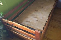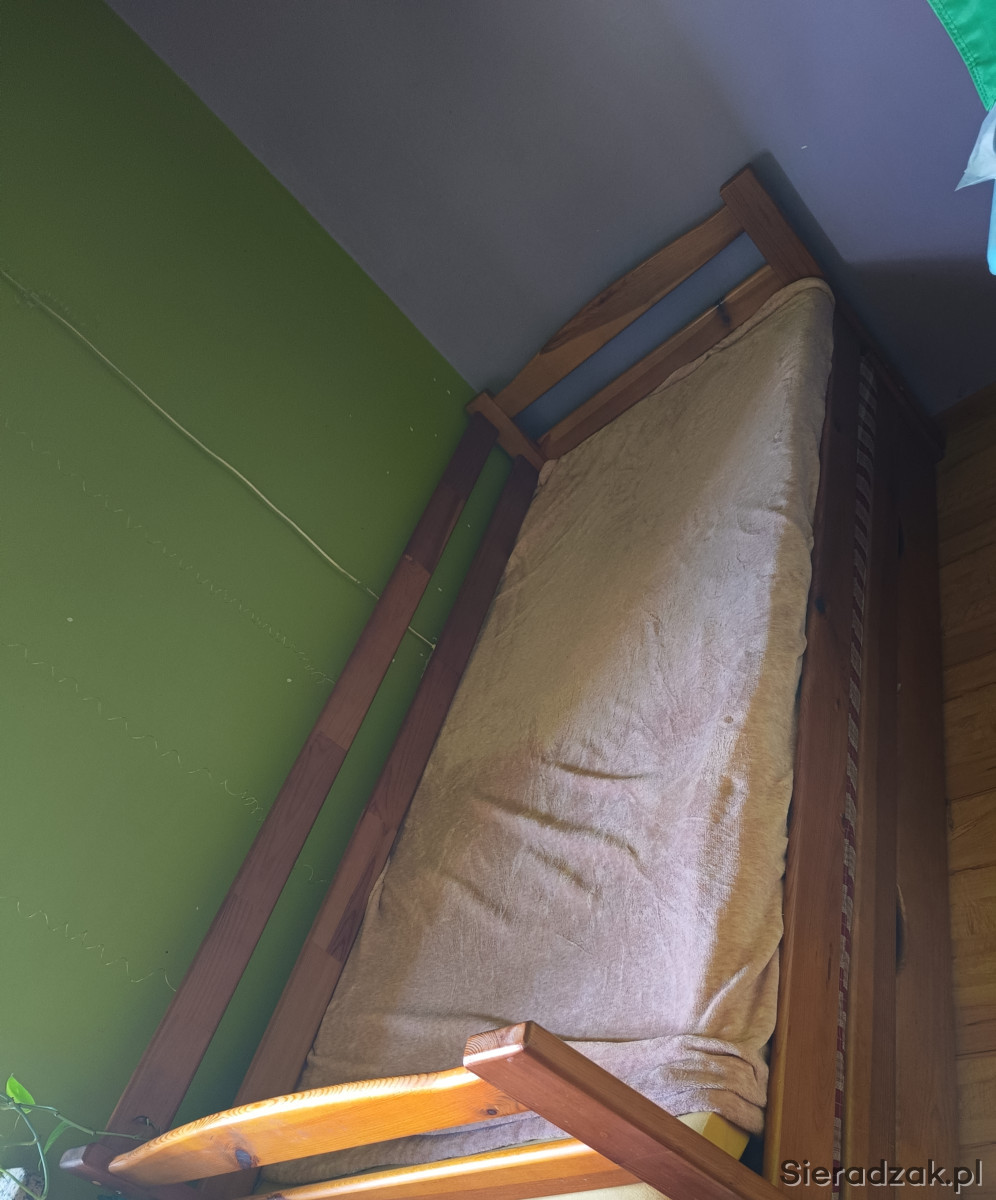 Sprzedam łóżko podwójne z pojemnikiem na pościel, używane. Jednoosobowa góra plus taki sam wysuwany dół. Pod spodem wysuwany na kółkach pojemnik na pościel.