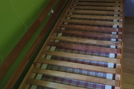 Łóżko jest rozkręcone, łatwo je złożyć ponieważ to klika elementów. Pojemnik na pościel nie jest rozkręcony.
