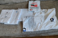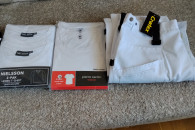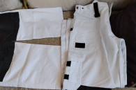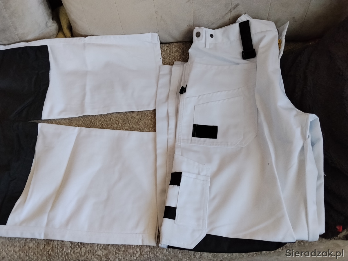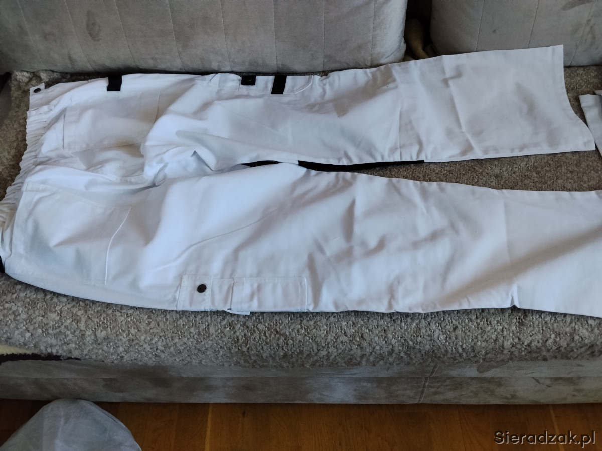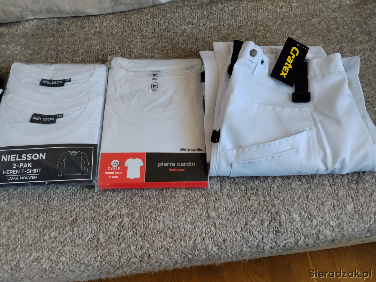Sprzedam spodnie robocze białe material płótno żeglarskie bardzo mocne różne rozmiary posiadam z większą ilość a także podkoszulki różne rozmiary mogę sprzedać hurtowo spodnie pochodzą z Belgii