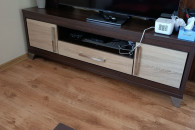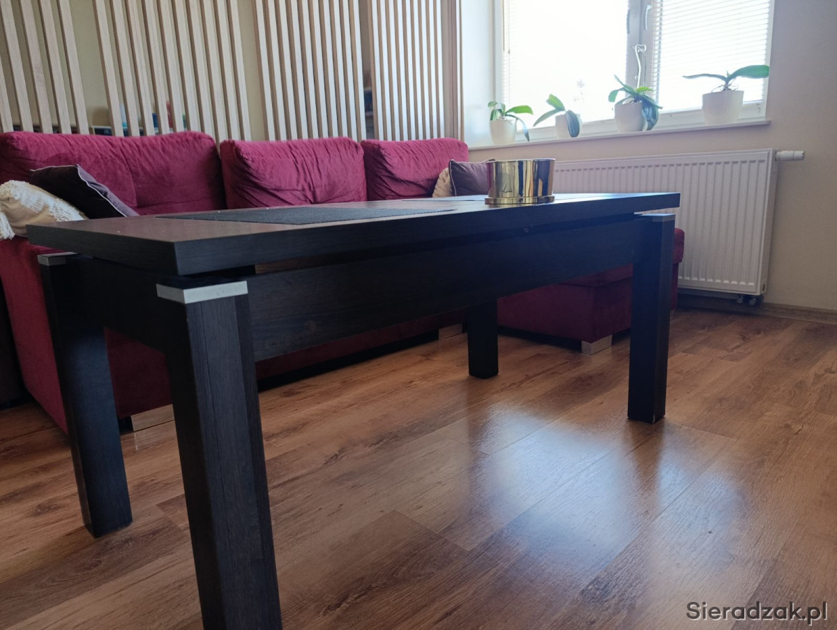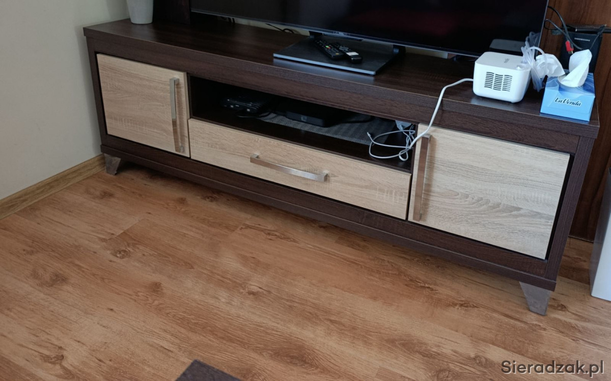 Do sprzedania meble do salonu. W skład zestawu wchodzi szafka RTV o wymiarach 170 szerokość na 42 głębokość na 60 wysokość. Witryna o wymiarach 50 sz na 42 g na 200 w. Komoda o wymiarach 170 sz na 42 g na 106 w. Ława o wymiarach od. 124 do 180 sz na 63 g na 56 do 68 w. Półki wiszące x2 sztuki o wymiarach 90 sz na 14,5 g na 20 wysokość.