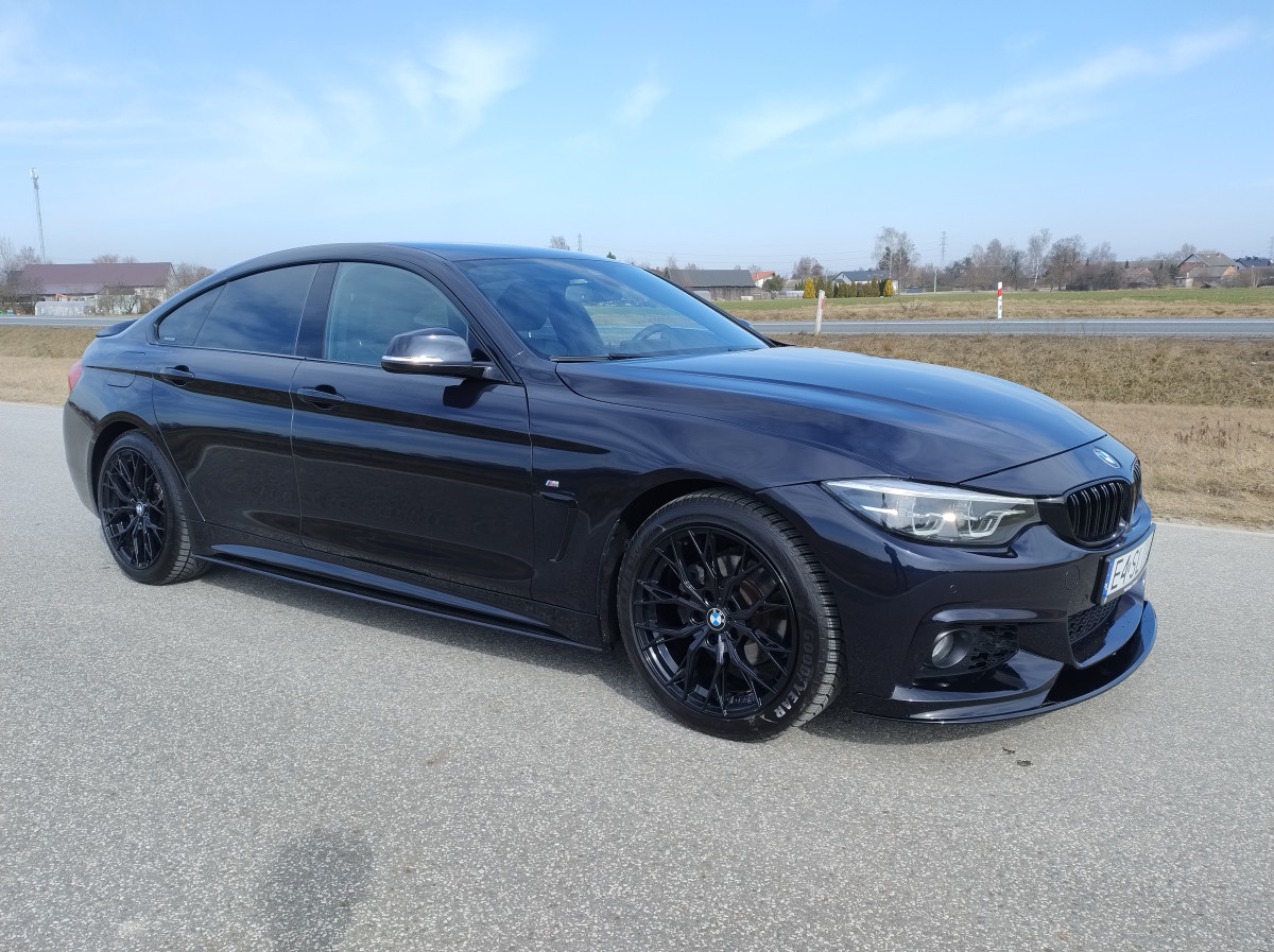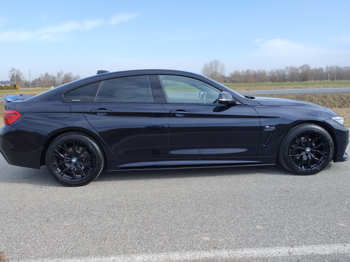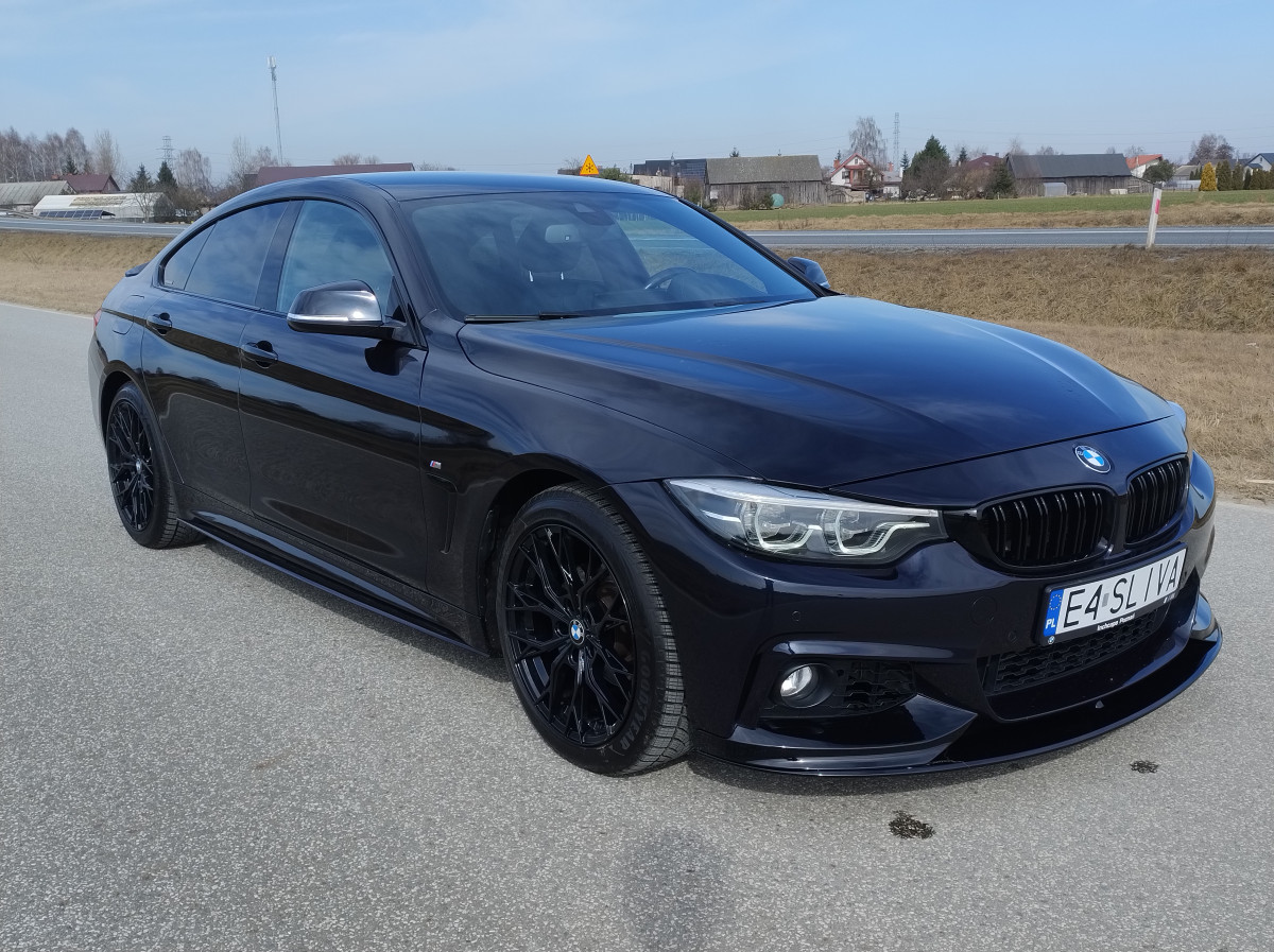 Witam mam na sprzedaż piękne BMW Seria 4 F36 420i Gran Coupe M pakiet z 2018 roku w kolorze Carbonshwarz Metallic z bogatym wyposażeniem. Samochód prezentuje się świetnie, regularnie serwisowany w ASO BMW Kalisz z historią do wglądu. Utrzymany w bardzo dobrym stanie techniczym jak i widać wizualnym.