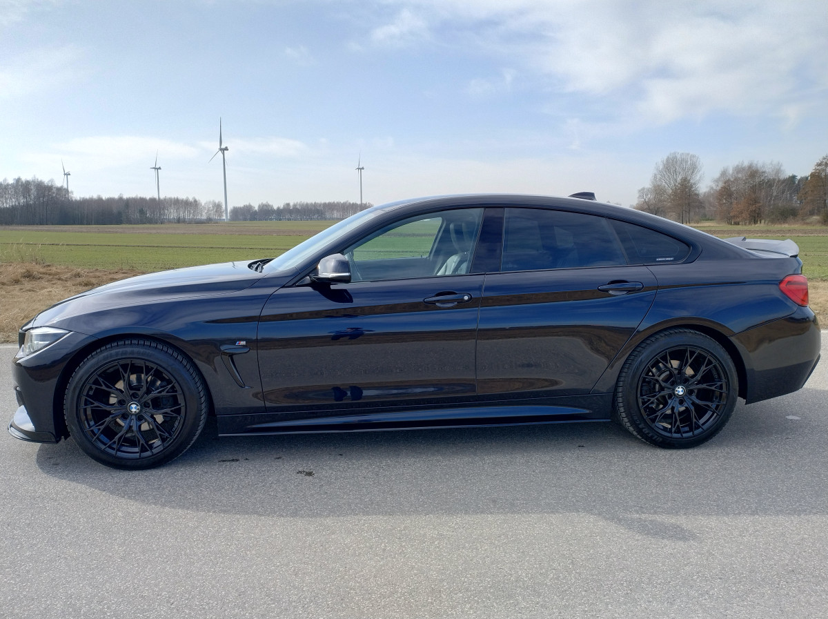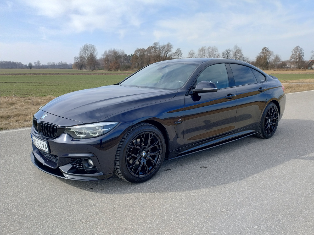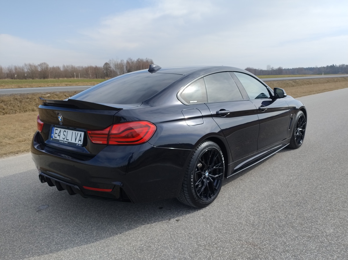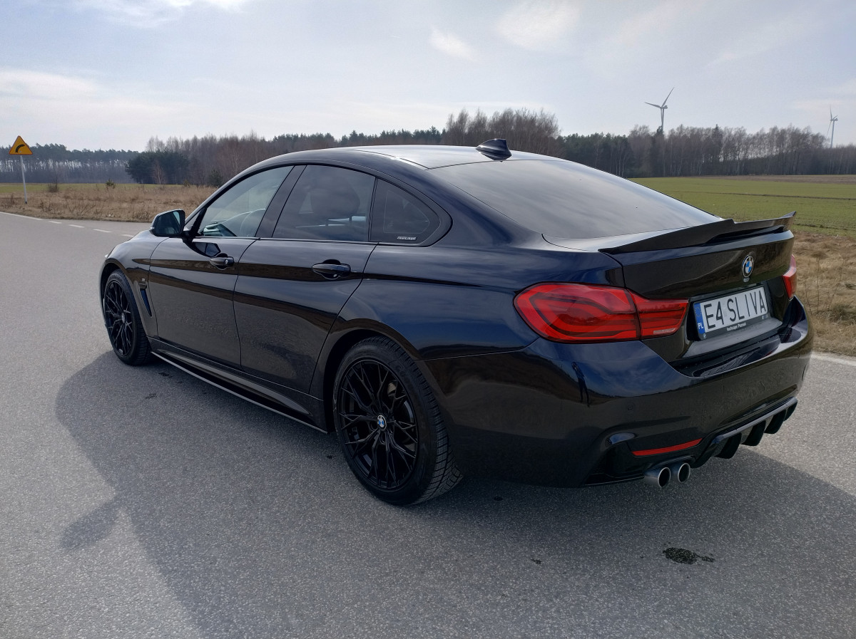 Witam mam na sprzedaż piękne BMW Seria 4 F36 420i Gran Coupe M pakiet z 2018 roku w kolorze Carbonshwarz Metallic z bogatym wyposażeniem. Samochód prezentuje się świetnie, regularnie serwisowany w ASO BMW Kalisz z historią do wglądu. Utrzymany w bardzo dobrym stanie techniczym jak i widać wizualnym.