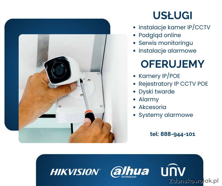 Oferuję profesjonalny montaż systemów monitoringu (CCTV) dopasowany do Twoich potrzeb i budżetu. Pracuję na sprawdzonym sprzęcie renomowanych marek (Hikvision, Dahua i inne).