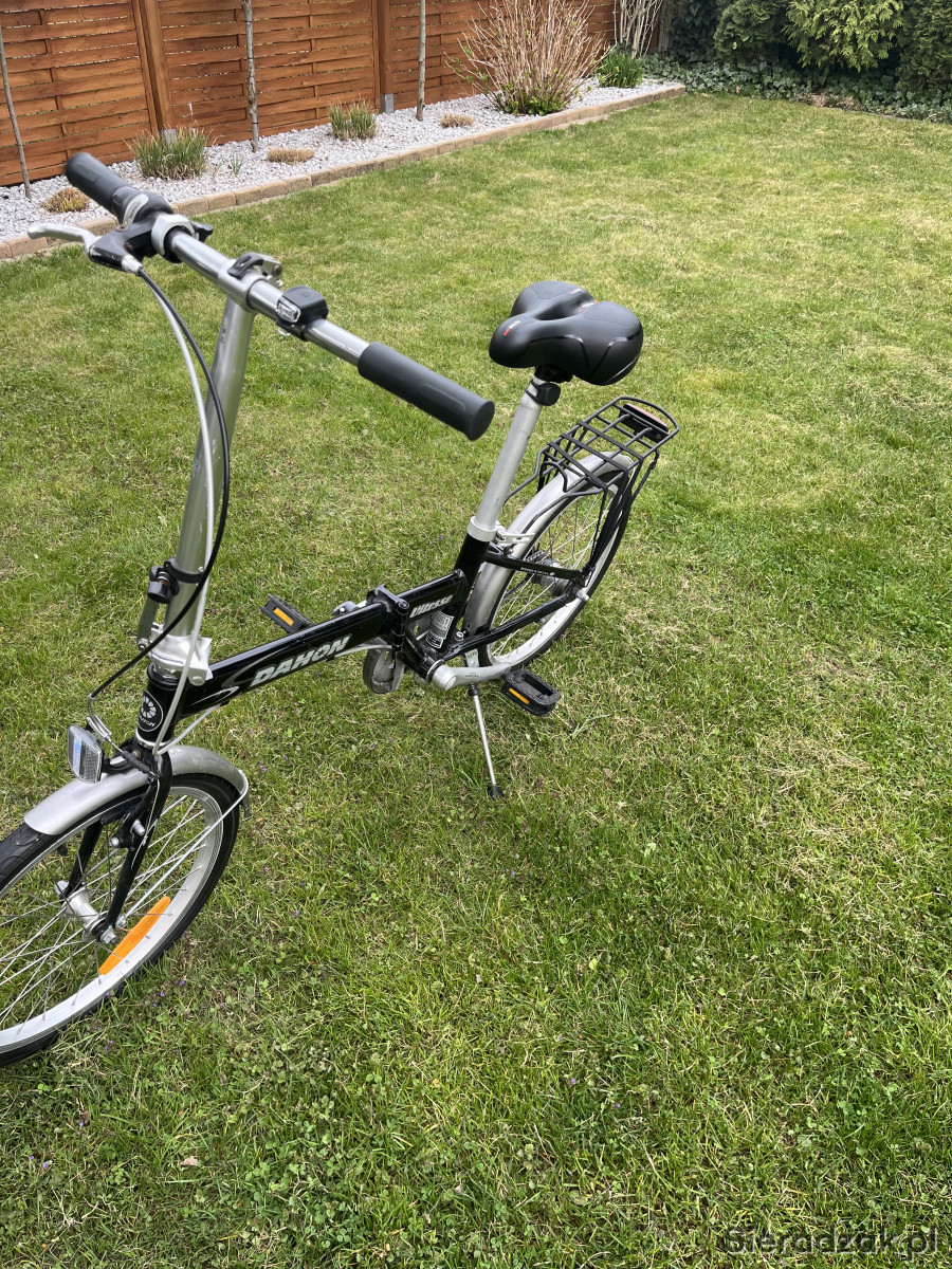Sprzedam markowy rower składak firmy Dahon model Vietesse, 3 biegi w piaście, hamulec przedni v-brake, hamulec tylny nożny (torpedo). Rama aluminiowa. Nowe opony, łańcuch i siodełko. Oświetlenie przód, tył, bagażnik. Stan - jak zdjęciach, posiada ślady użytkowania. Szczegółowe informacje - telefonicznie.