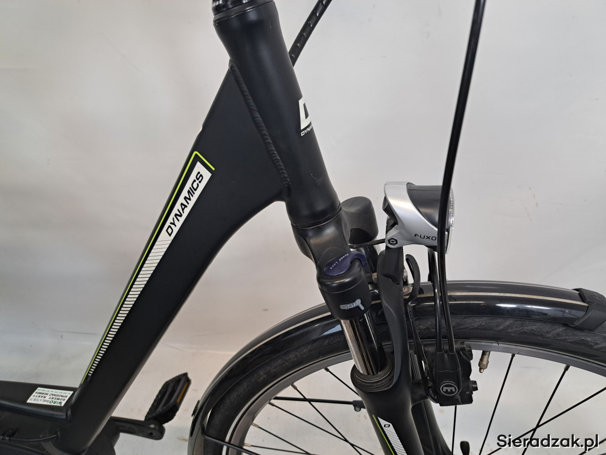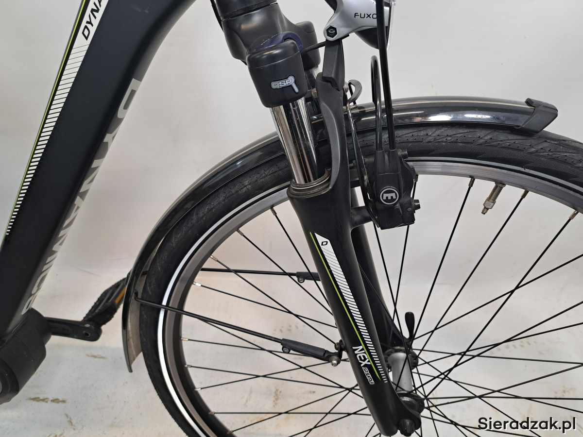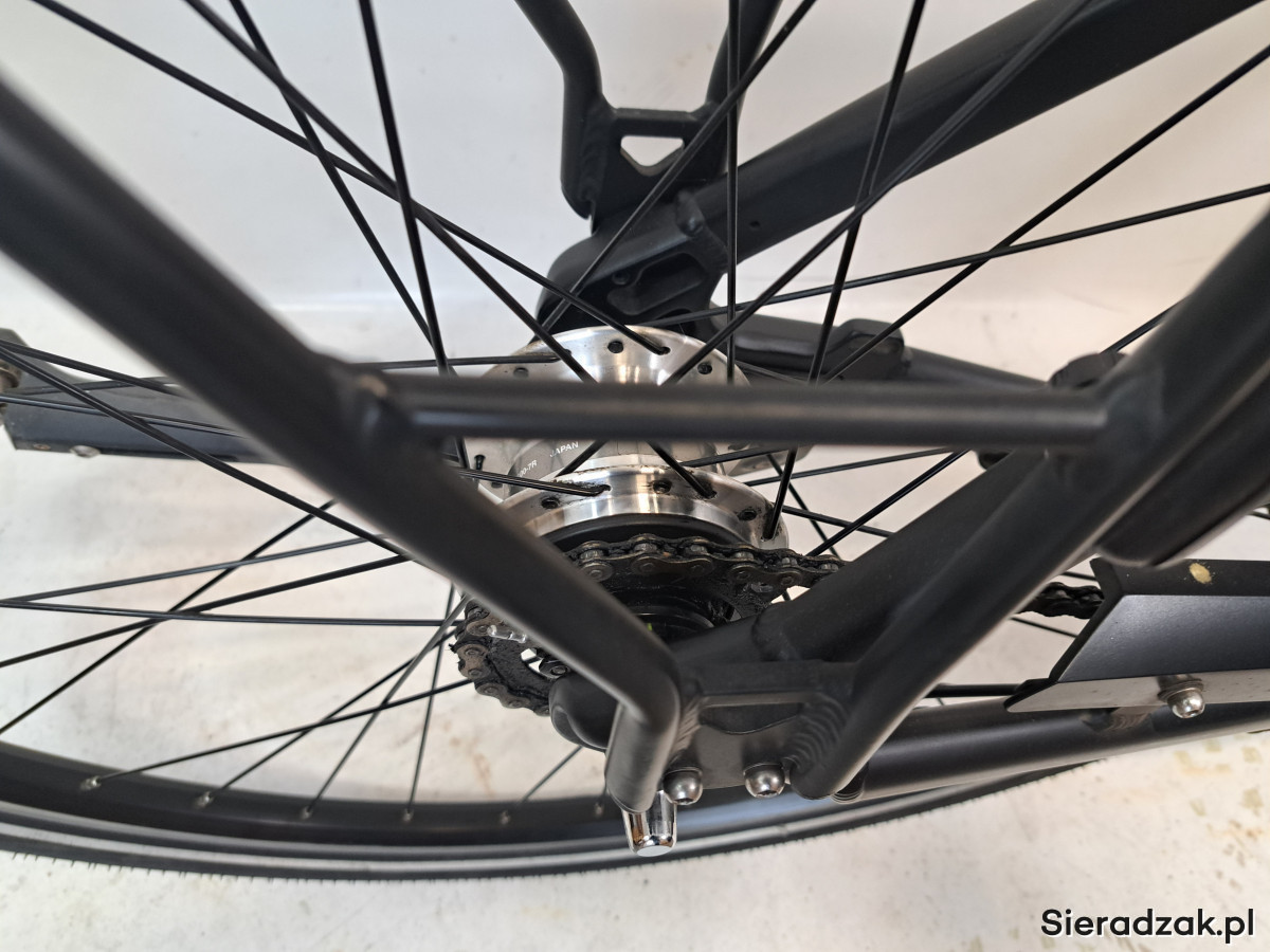 silnik BOSCH 250W,36V,bateria BOSCH 400Wh,wyświetlacz BOSCH.ładowarka i klucz w komplecie. rama aluminium 6061 20" 50cm,przerzutka shimano nexus 7-biegowa w tylnej piaście,hamulce hydrauliczne magura hs11,amortyzator sr suntour nex,oświetlenie fuxion zasilane z akumulatora,siodełko żelowe freeway,zabezpieczenie tylnego koła.na wyposażeniu również lusterko,bagażnik,stopka,koszyk na bidon.rower sprawny.