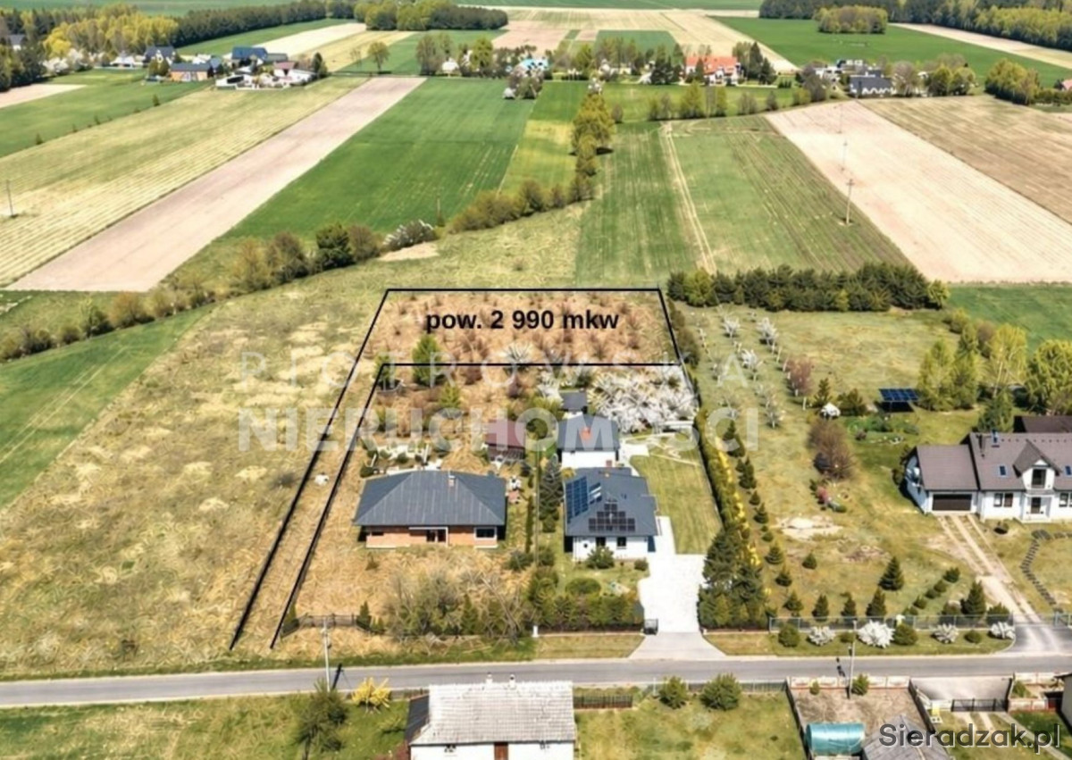Na sprzedaż dwie działki budowlane sprzedawane łącznie, tworzące jedną spójną i bardzo komfortową przestrzeń o łącznej powierzchni 2 990 m², położone w miejscowości Stefanów Ruszkowski (gmina Brzeźnio), ok. 12 km od Sieradza.
